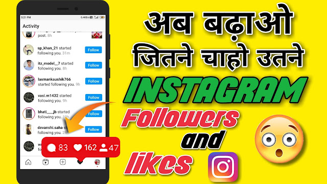 Hello friends I am Abhi Meena आपका मेरी वेबसाइट में बहुत बहुत स्वागत है। तो दोस्तो आज का हमारा topic हैं- How to increase Instagram followers and likes आप इस फोटो पर क्लिक करके मेरी वीडियो देख सकते हैं।👆👆👆 आज दुनिया भर में लगभग सभी लोग जो एंड्राइड मोबाइल यूज करते हैं वह सभी इंस्टाग्राम जरूर चलाते होंगे। क्योंकि इंस्टाग्राम एक ऐसा सोशल मीडिया प्लेटफॉर्म है जहां पर लोग अपने फोटो वीडियो आदि दूसरे लोगों के साथ शेयर कर सकते हैं। जो भी इंस्टाग्राम चलाता है वह चाहता है कि वह इंस्टाग्राम के सभी फीचर्स को जाने समझे जिससे वह इंस्टाग्राम को आसानी से चला सके। तो दोस्तो जैसा की आप सब जानते है कि instagram पर likes और followers कितने जरूरी है। आज सभी लोगो को अपने instagram account पर बहुत सारे followers और likes चाहिए होते है। कई लोग ऐसे होते हैं जो बहुत मेहनत करके भी अपने काम पर followers और लाइक नहीं बडा पाते। यदि आप भी अपने instagram पर followers और likes बढ़ाना चाहते हैं तो मेरे यूट्यूब चैनल को जरूर सब्सक्राइब कर ले मैं वहां पर इंस्टाग्राम के फॉलोअर्स और लाइक्स के वीडियो बनाता रहत...